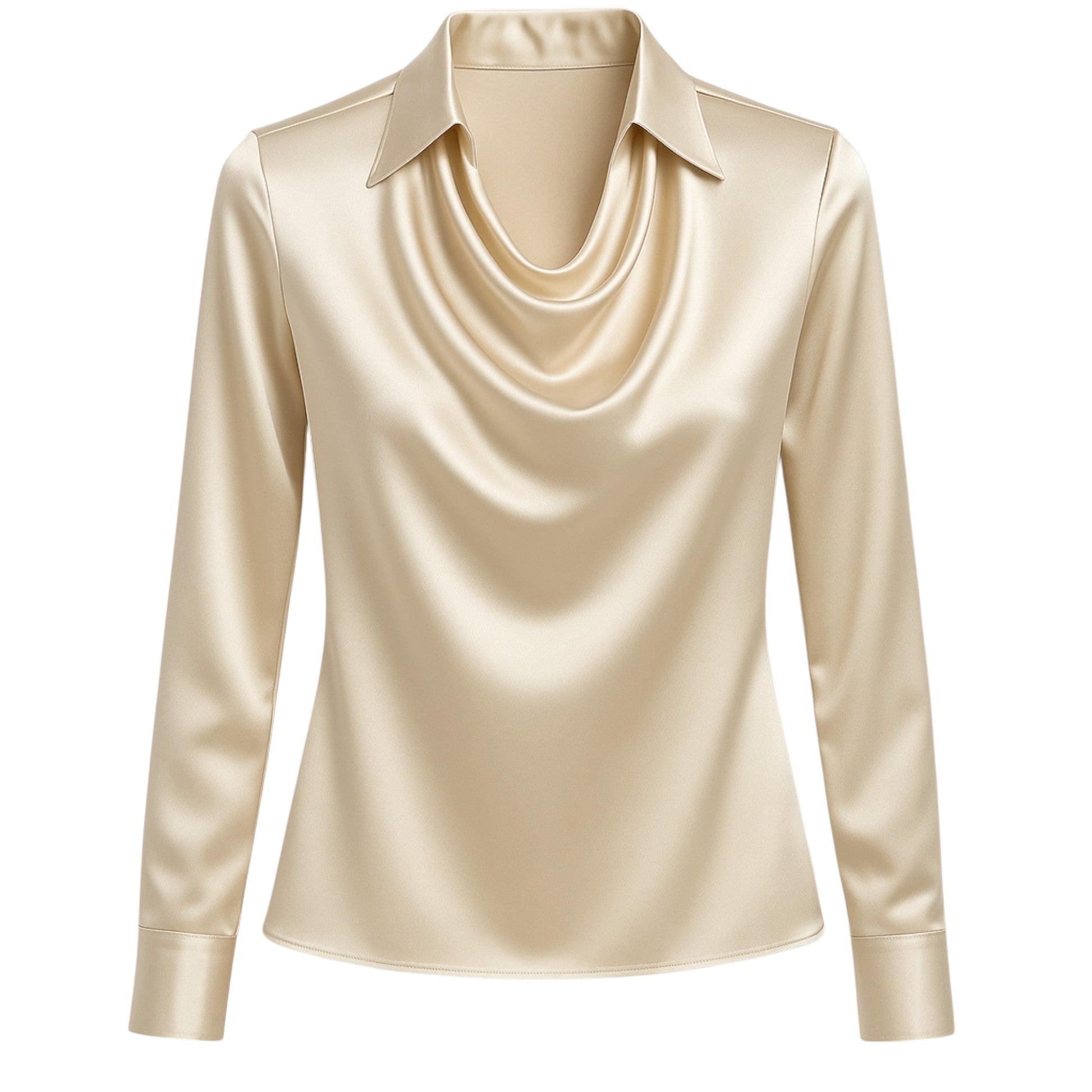 Vireline vereint zeitlose Eleganz mit luxuriöser Leichtigkeit. Der sanft geraffte Kragen und der fliessende Stoff verleihen der Bluse eine feminine Ausstrahlung und sorgen für einen stilvollen Look zu jedem Anlass.