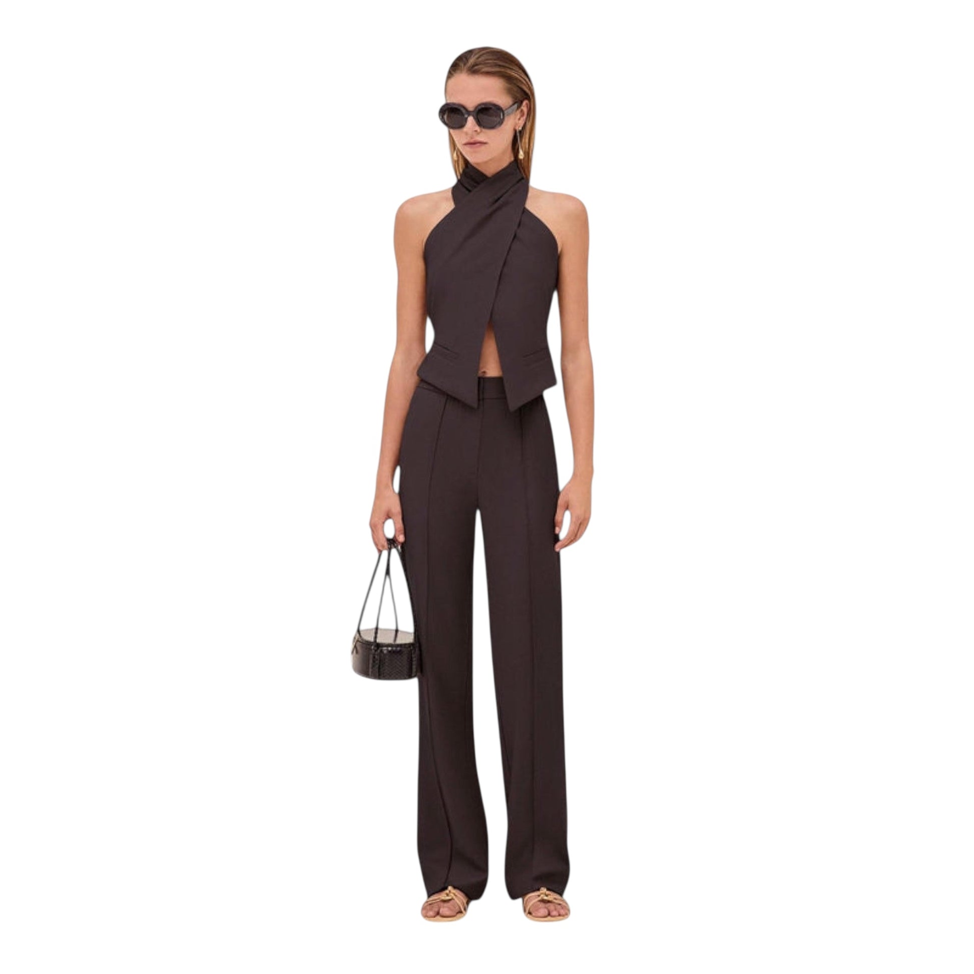 Elouise verbindet moderne Eleganz mit klarer Linienführung. Der Cross-Halter-Ausschnitt setzt stilvolle Akzente, während die strukturierte Passform für einen gepflegten, zeitlosen Look sorgt.