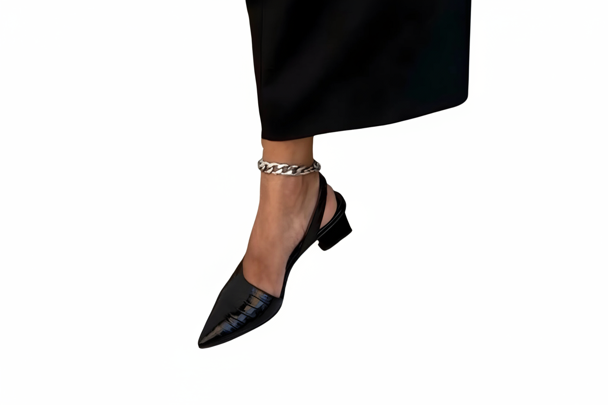 Die ruhige Linienführung und der stabile Absatz sorgen für einen sicheren, stilvollen Look, der sich vielseitig kombinieren lässt. Ob im Alltag oder zu gepflegten Anlässen – Lynn ergänzt Outfits unaufdringlich und feminin.