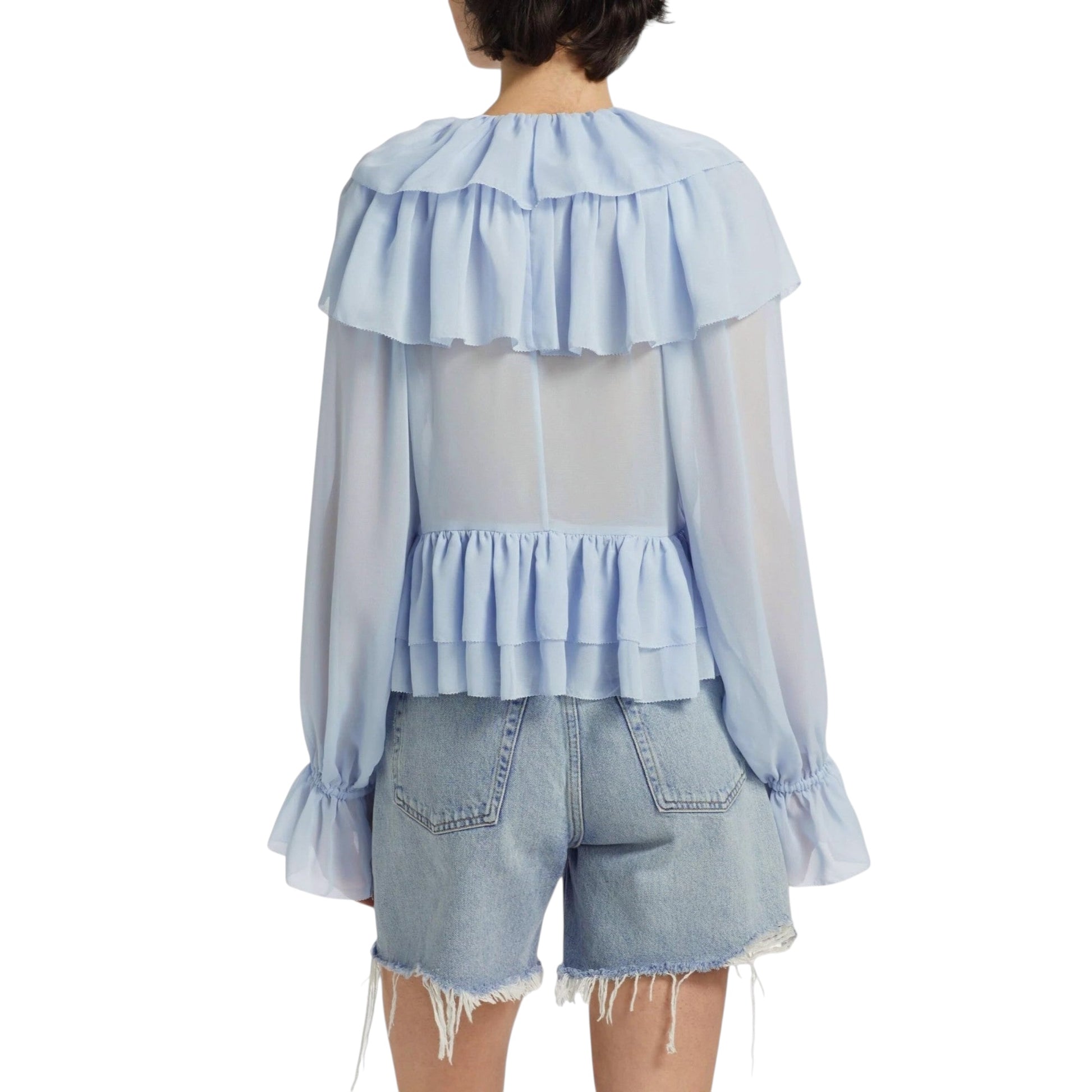 – Gestufte Rüschen am Ausschnitt und Saum